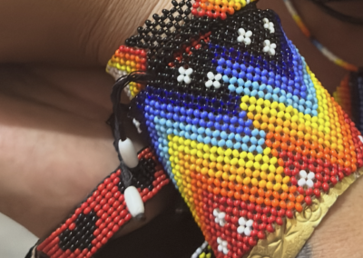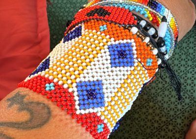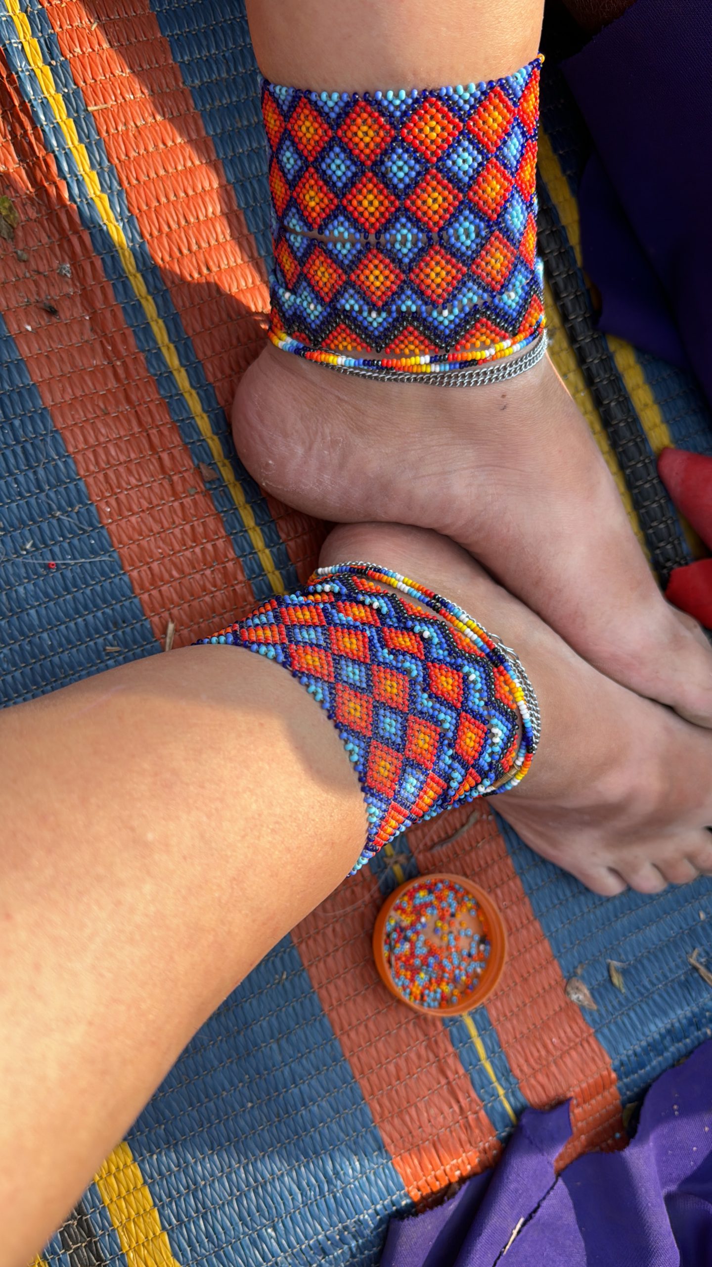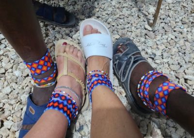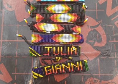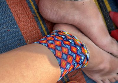 elles passent souvent plusieurs dixaines d’heures assises au sol, pour confectioner quelques bracelets, des colliers, des bagues, des bracelets de chevilles, des ceintures, en perle.